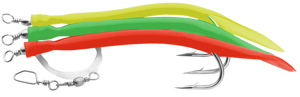 Ausgestattet mit drei hochwertig gebundenen Gummi-Makks in den beliebtesten und erfolgreichsten Farben, sorgt dieses Vorfach für maximale Reizwirkung auf Dorsch, Köhler, Leng und andere Räuber. Durch ihre natürliche Bewegung im Wasser und die kräftigen Signalfarben gehören Gummi-Makks zu den effektivsten Meeresködern überhaupt.