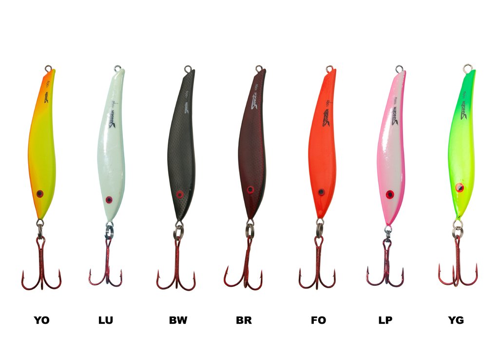 Der Pilker ist in sieben fängigen Farben erhältlich und deckt mit einem Gewichtsspektrum von 80 g bis 200 g alle relevanten Tiefen und Strömungsbedingungen in Nordsee, Ostsee und Norwegen ab.