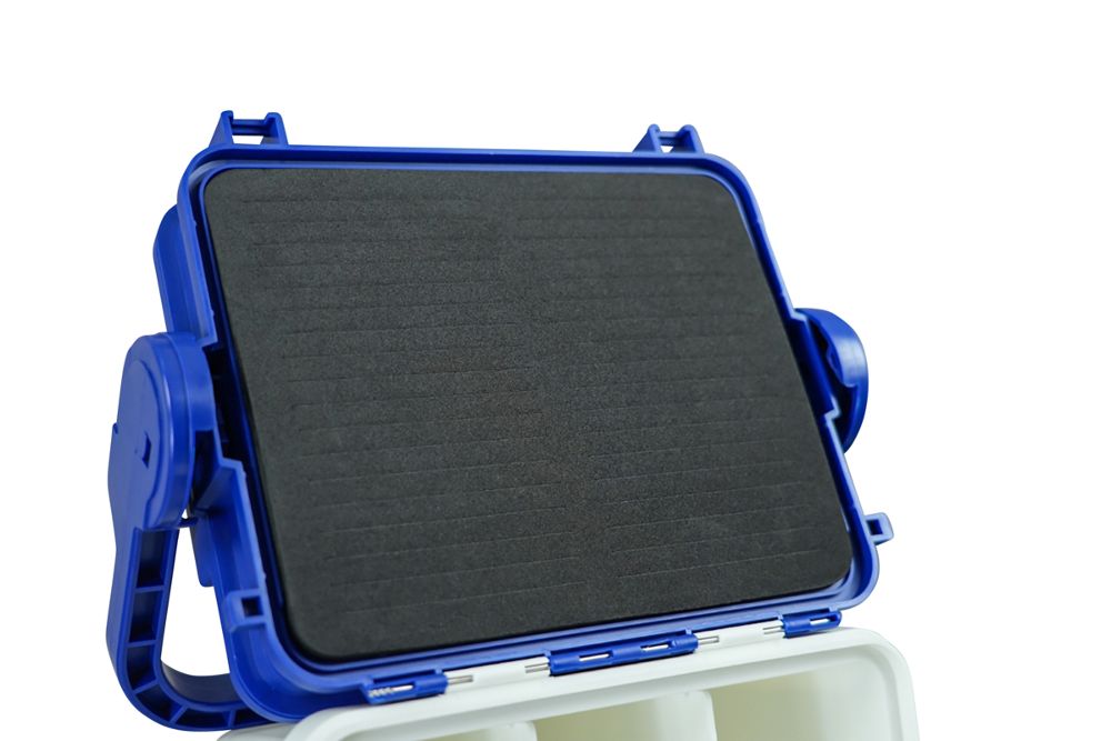 - Geräumiges Oberfach: Der komplette Deckel enthält ein großzügiges, teilbares Fach für Gewichte, Kunstköder oder andere Utensilien, die Sie verstauen möchten.