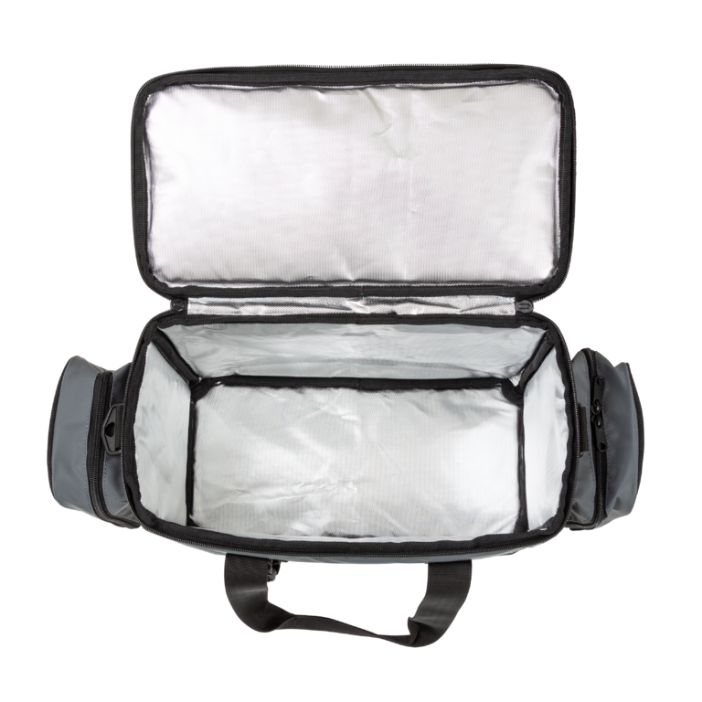 Hergestellt aus vollständig wasserdichten Material und einem strapazierfähigen Boden ist diese Tasche zum Angeln vom Ufer oder vom Boot aus geeignet. Nicht nur, dass diese Tasche selbst vollständig isoliert ist, so dass sie die Köder für einen Tag kühl hält, sondern die beiden Innentaschen können vollständig abgenommen und in die Tiefkühltruhe gelegt werden. Die Seitentaschen sind komplett mit elastischem Gurtband ausgestattet, um Öle, Additive und Spritzen sicher aufzubewahren. Externes Gurtband mit Clips bietet Platz für Ergänzungen in letzter Minute, wenn der interne Platz am Limit ist.