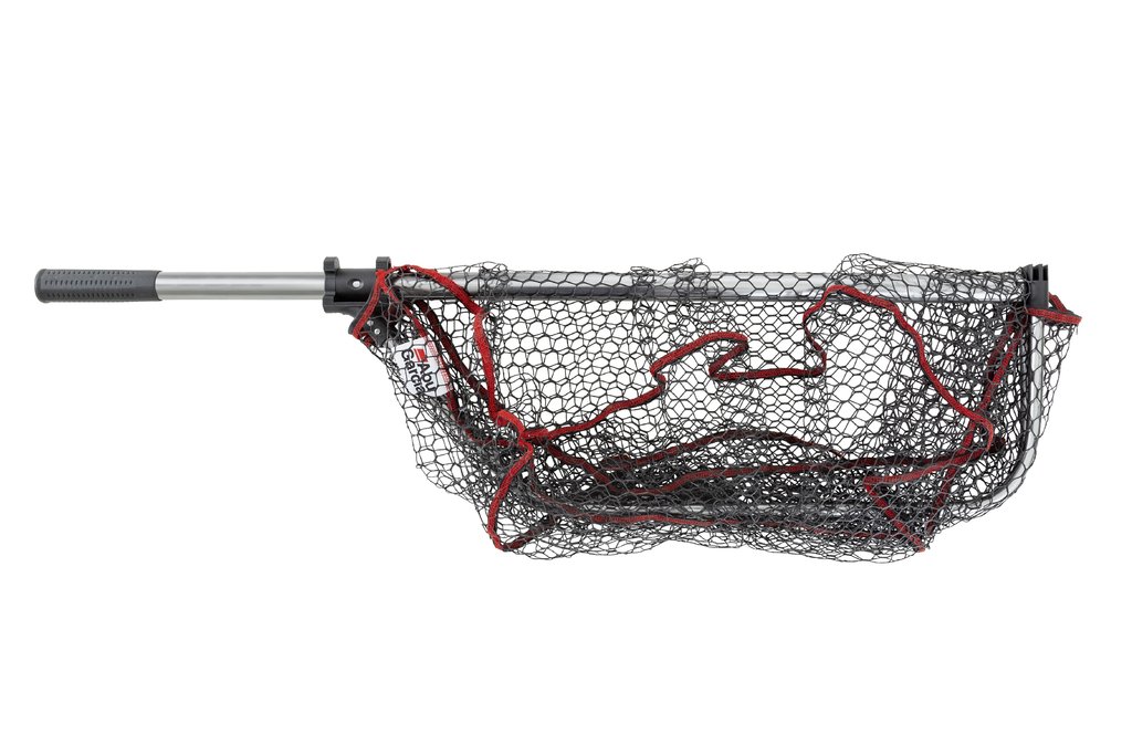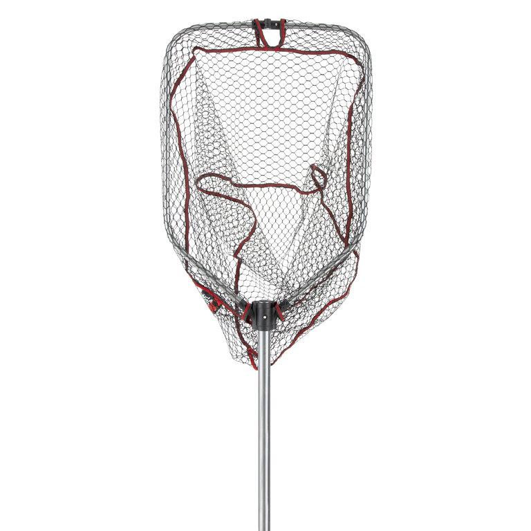 Dieser Kescher besticht durch seine leicht Bauweise und das gummierte Netz. Zum besseren Transport lässt er sich zusammenfalten, was seine Stabilität aber nicht beeinträchtigt. Er ist einfach zu bedienen. Es gibt diesen Kescher in zwei Größen und somit auch ideal als Bootskescher einsetzbar.