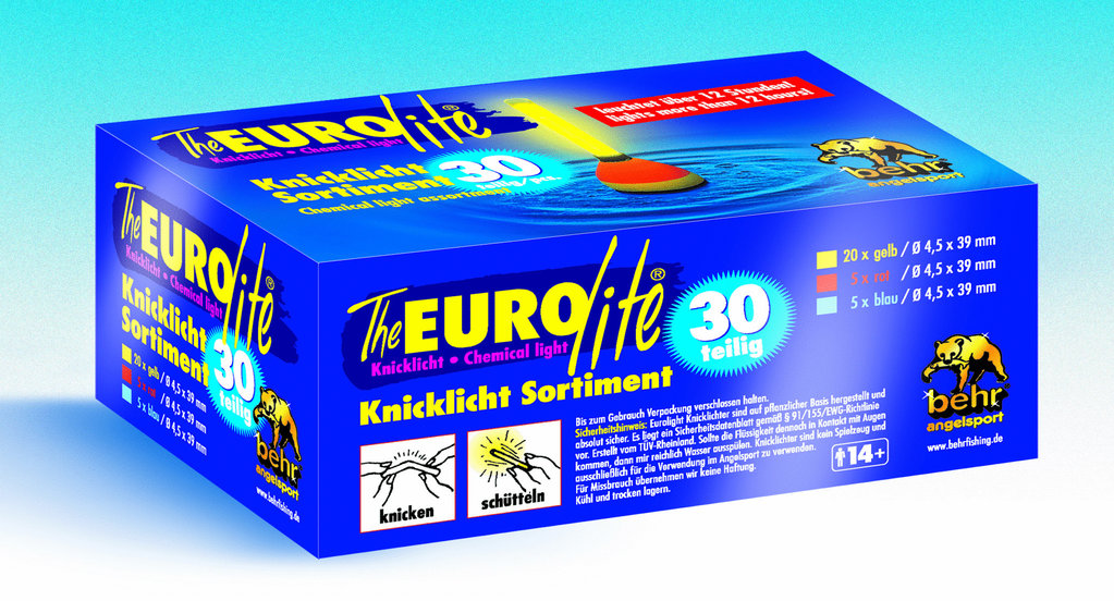 Diese Sortimentbox beinhaltet 20 gelbe, 5 rote und 5 blaue Knicklichter in der Standardgröße 4,5 x 39 mm. Diese Knicklichter sind optimal für den Einsatz mit den Behr Pilkern mit Knicklichteinsatz.
