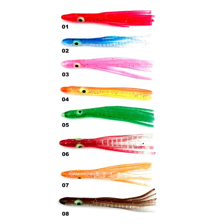 Diese Mini.Octopusse sind durch ihr UV-Aktivität ideal für das Meeresangeln. Mit einer Länge von 4,5cm sind sie ideal zum tunen von kleineren Kunstködern oder zum Bau von Vorfächern geeignet. Es stehen acht verschiedene Farben zur Auswahl.