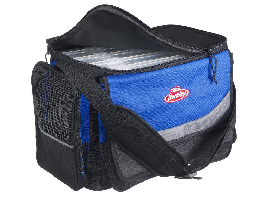 Diese sehr geräumige Ködertasche von Berkley wird inklusive 4 Zubehörboxen geliefert. Sie besitzt einen verstellbaren Schultergurt und drei Aufsatztaschen. Die Größe dieser Tasche beträgt ca. 47x21,5x31cm. Die Farbe ist Blau-Grau-Blau.
