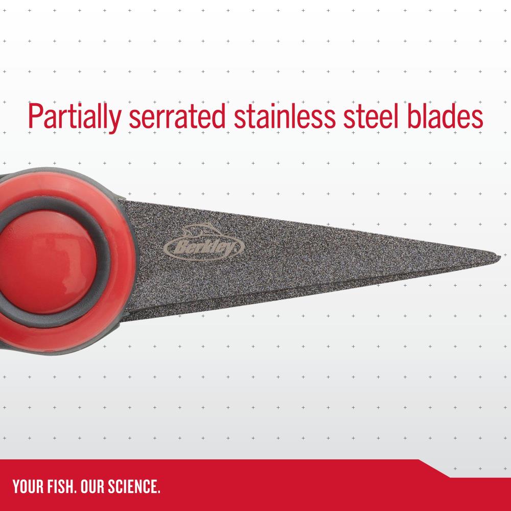Die teilweise gezahnten, korrosionsbeständigen Edelstahlklingen mit dem ergonomischen, angeformten Griff und der verstellbaren Handschlaufe sind das ideale Schneidewerkzeug für Nylon und geflochtene Angelschnüre. Nützlich auch für die Modifizierung von Ködern und das Trimmen von ummantelten Ködern.
