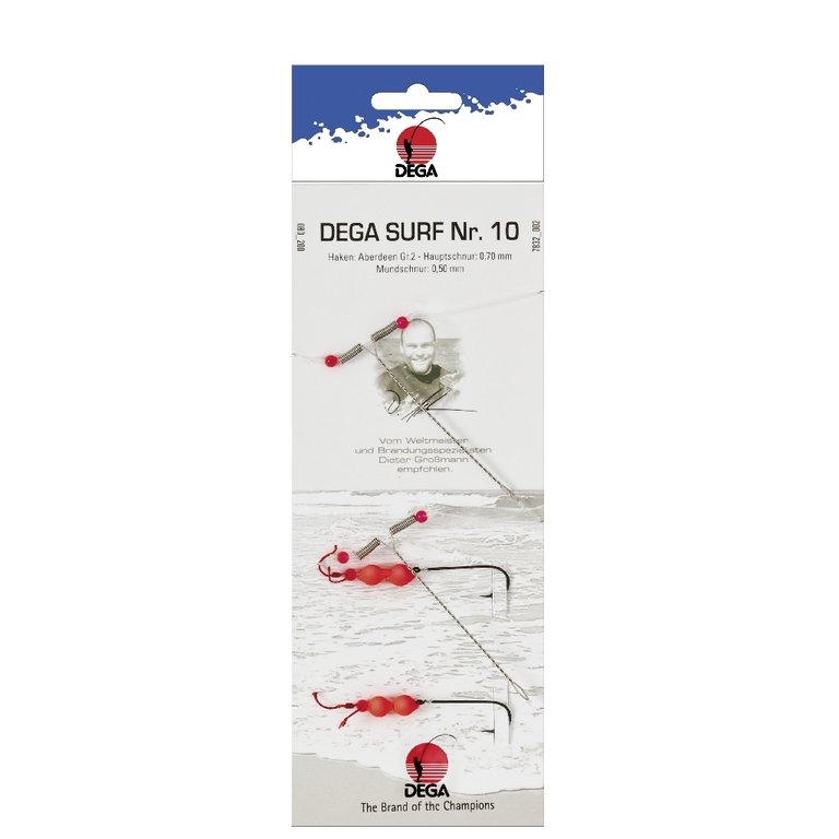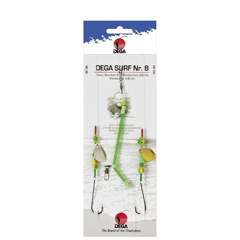 Die DEGA Brandungsvorfächer sind von Spezialisten entwickelt worden. Alle Vorfächer sind handgefertigt und von Qualitätskontrolleuren bedingslos geprüft. Es gibt zehn verschiedene Modelle in unterschiedlichen Ausführungen.