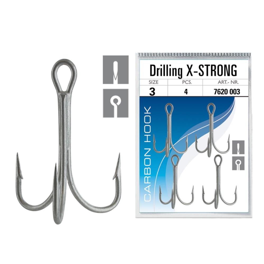 Dieser vernickelte und starke Drilling ist ideal für die Meeresangelei, um defekte ooder zu schwache Drillinge zu ersetzen. Je nach Größe sind 4 bis 2 Stück in jeder Packung enthalten. Die Haken stehen in den Größen 3 bis 6/0 zur Verfügung.