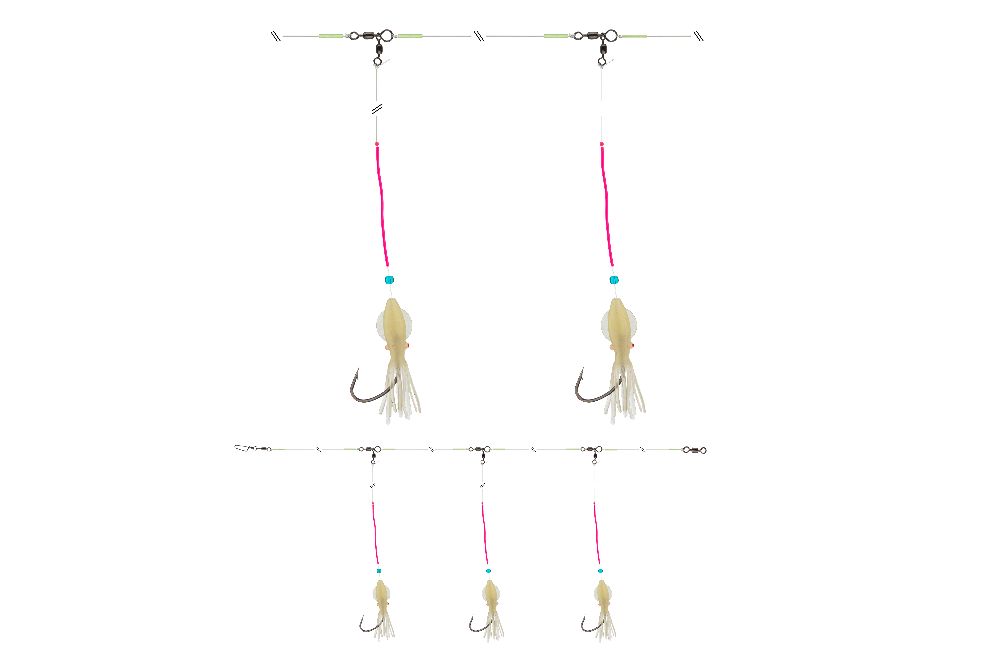 - Optimierte Handhabung: Die speziellen Rotationswirbel an den Seitenarmen, der Knotenschutz und die Tubes am Oktopus verhindern ein Verdrallen der Montage beim Absinken in große Tiefen, was die Handhabung erleichtert.