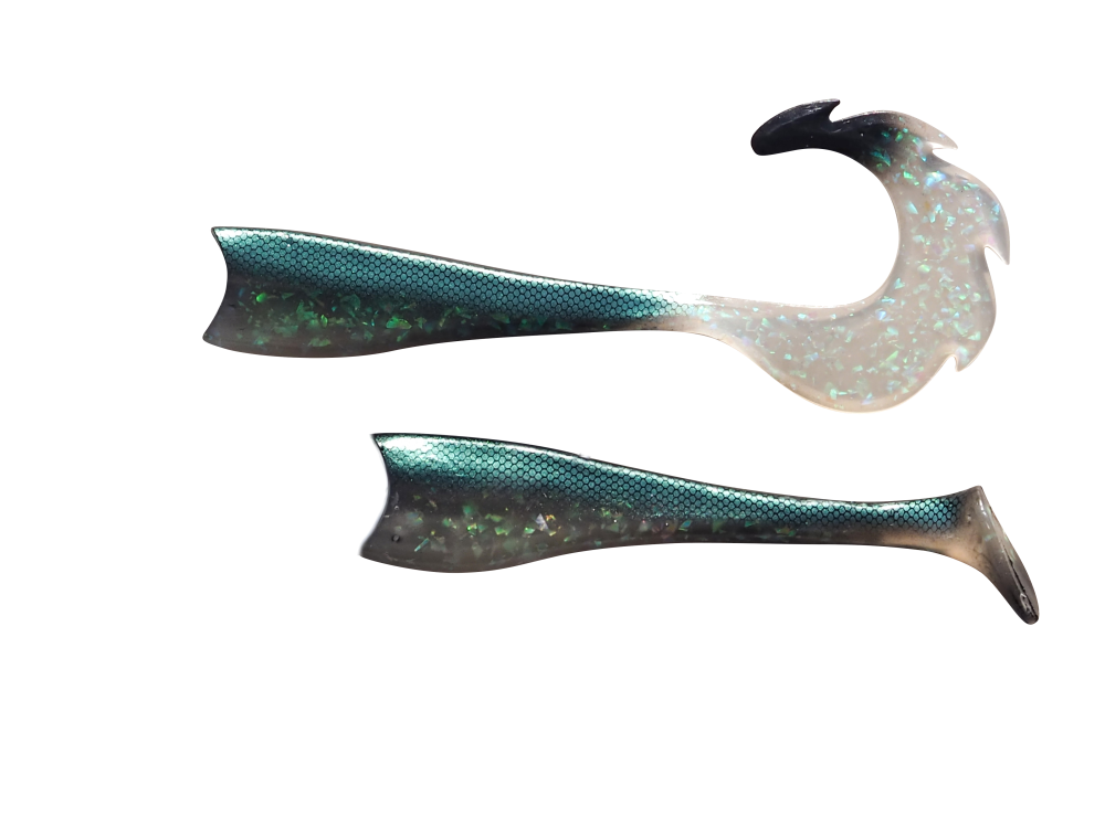 Der Hali Bandit wird mit zwei Schwänzen geliefert, einmal mit Paddle Tail und einmal mit Ruster-Tail. Dieser Köder ist auch hervorragend zum Schleppfischen geeignet.