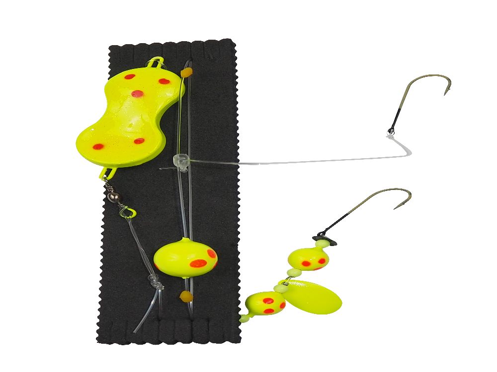 Der Doubletten-Lifter ist mit einem 120g Buttlöffel (bleifrei) ausgestattet und verwendet Teflon-Haken der Größe 3/0. Zudem enthält er das Original Lil-Corky, das für einen extra großen Auftrieb sorgt. Die Schnur hat einen Durchmesser von 0,60 mm, was für zusätzliche Stabilität und Zuverlässigkeit sorgt.