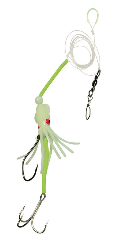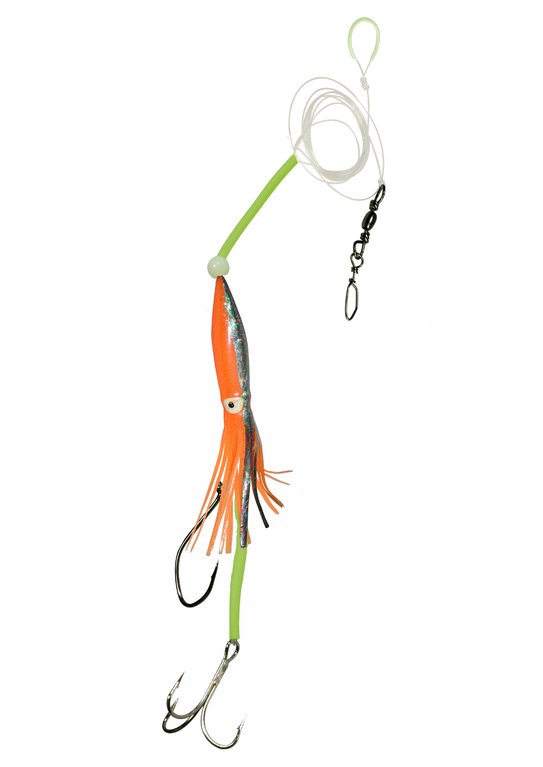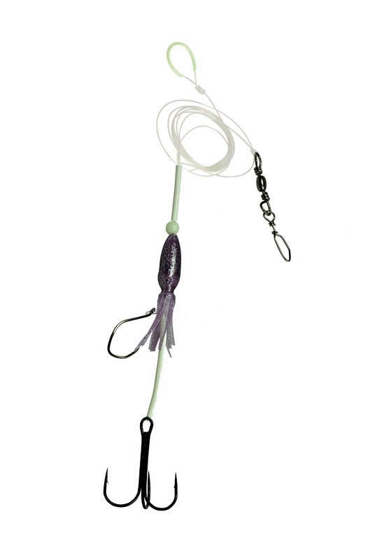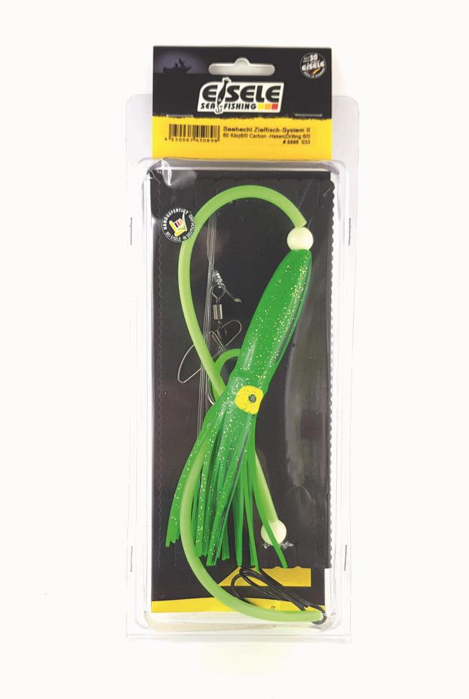 Diese Vorfächer sind für die großen Seehechte entwickelt. Sie besitzen eine Anbissstelle, welche aber mit zwei Haken für ganze Köderfische ausgestattet ist. Der Einzelhaken und Drilling haben die Größe 6/0. Im Vergleich zum ebenfalls erhältlichen Leng-System ist das Vorfach dezenter und fürs Freiwasser gebaut, da der Seehecht schneller, agressiver und wilder unterwegs ist. Die hochwertigen Haken sind an einer 1,20mm starken monofilen Schnur befestigt. Weiter besitzen sie einen starken Sicherheitswirbel der Größe 3/0 und Leuchtschläuche um das Vorfach vor den scharfen Seehechtzähnen zu schützen. Das Vorfach gibt es in sechs Varianten, welche sich in der Farbe und Form der Oktopusse unterscheiden. Zwei Varianten besitzen 10cm lange B2 Oktopusse in den Farben pink und loom. Zwei weitere haben 10cm B1 Oktopusse in purple und motoroil und die restlichen beiden 10cm lange Hogy-Oktopusse sind in black/green oder crab erhältlich. Die Farben der Oktopusse können auch wechseln.
