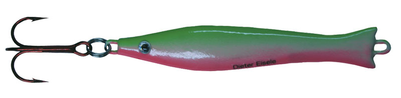 Der Pro-Select ist der Kult-Pilker im Dieter Eisele Meeresprogramm. Durch seine gebogene Form verleiht dem Pilker ein verführerisches Spiel, was sich in seiner sehr guten Fängigkeit widerspiegelt. Durch einen spitzen Kopf sinkt er schnell in die entsprechende Tiefe und wird dann mit leichten Zupfern zur Geheimwaffe. Vielen ist dies bereits bekannt und seine Fangemeinde schwört auf diesen Pilker.