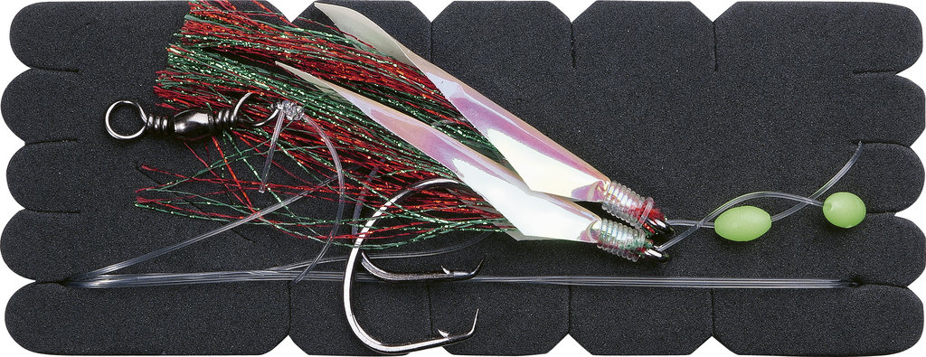 Dieses Premium-Vorfach besteht aus 2 Haken. Es gibt dieses Rig in den Größen 6/0 und 10/0. Hierbei handelt es sich um ein ideales Dorsch- und Köhlersystem.