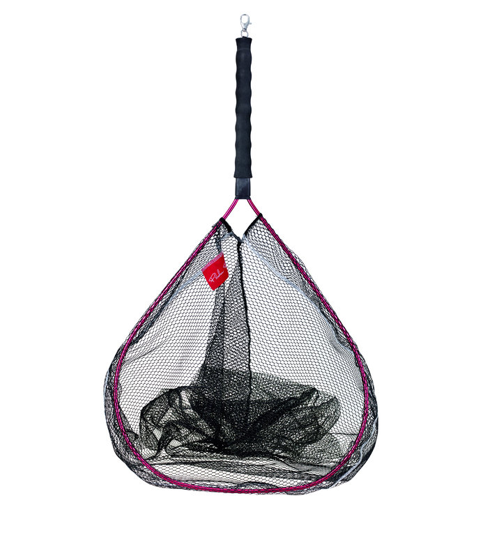 Ein praktischer Karabiner zur Befestigung ist mit einem Gummizug ausgestattet, sodass Sie den Kescher sicher und griffbereit aufbewahren können.