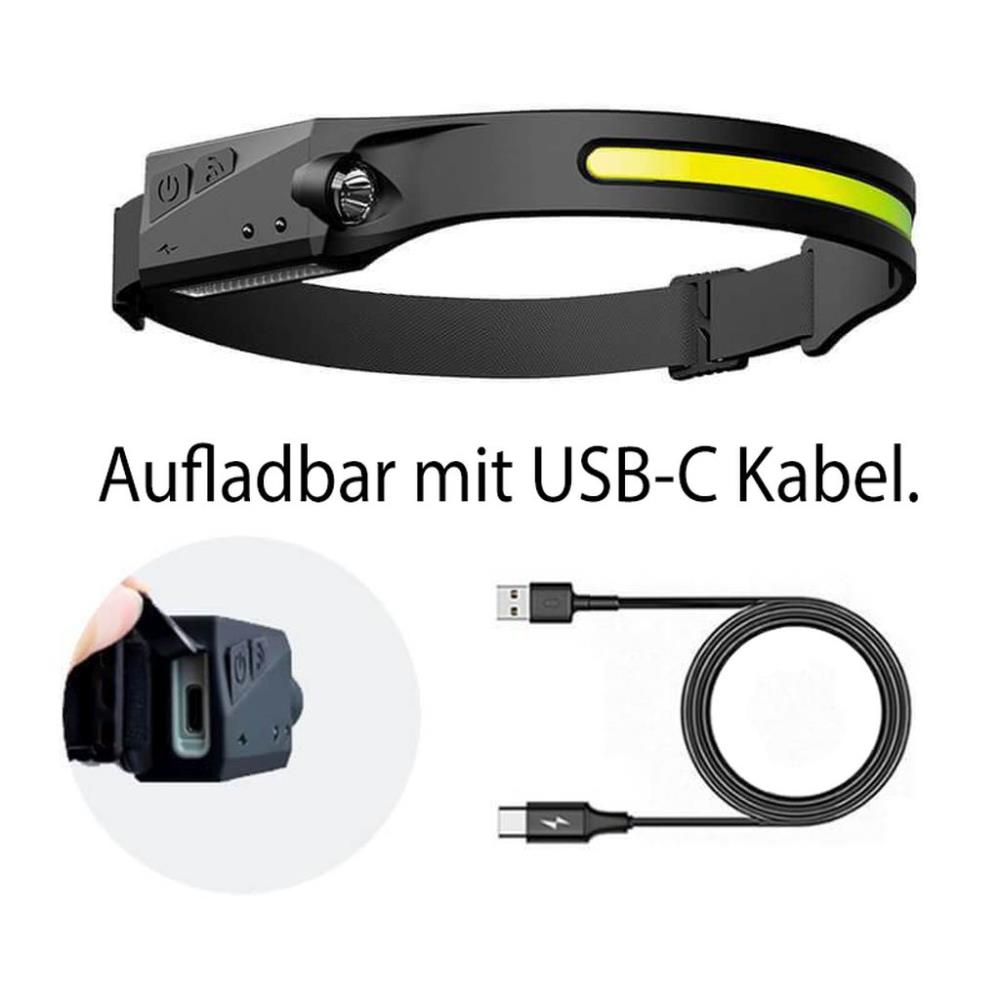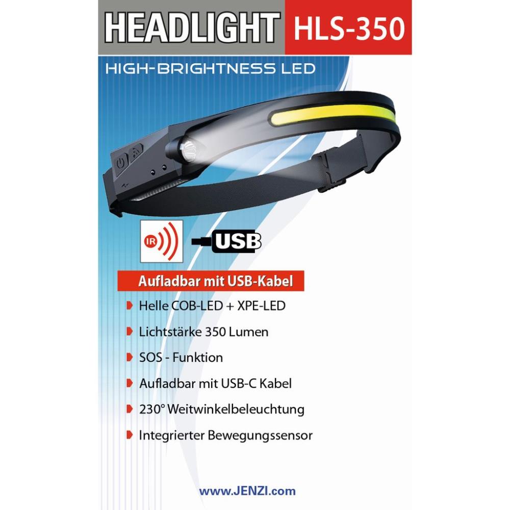 Dies ist eine aufladbare USB-Stirnlampe HLS-350 mit LED-Band. Egal ob beim Bau von Montagen, im Drill, im Zelt, auf dem Boot oder auch beim Arbeiten und Wandern - die HLS-350 Kopflampe sorgt für optimale Lichtverhältnisse und eine 230° Ausleuchtung. Das Highlight der HLS_350 Kopflampe ist der flexible 230° COB-Leuchtstreifen. Dieser sorgt für einen bequemen Tragekomfort an der Stirn sowie einen sehr breiten Ausstrahlwinkel. Dieser ermöglicht dir deine Umgebung besonders gut auszuleuchten. Zusätzlich ist an der Seite eine XPE-LED verbaut, welche das Ausleuchten auf weitere Distanzen ermöglicht. Die JENZI KOPFLAMPE HLS-350 lässt sich dank integriertem Infrarot Bewegungssensor berührungslos per Handbewegung EIN und AUS-schalten. Besonders praktisch beim Arbeiten mit Handschuhen, schmutzigen oder nassen Händen. Die XPE-LED sowie das COB LED-Band sind über den Druckschalter sowie den Bewegungssensor schaltbar.