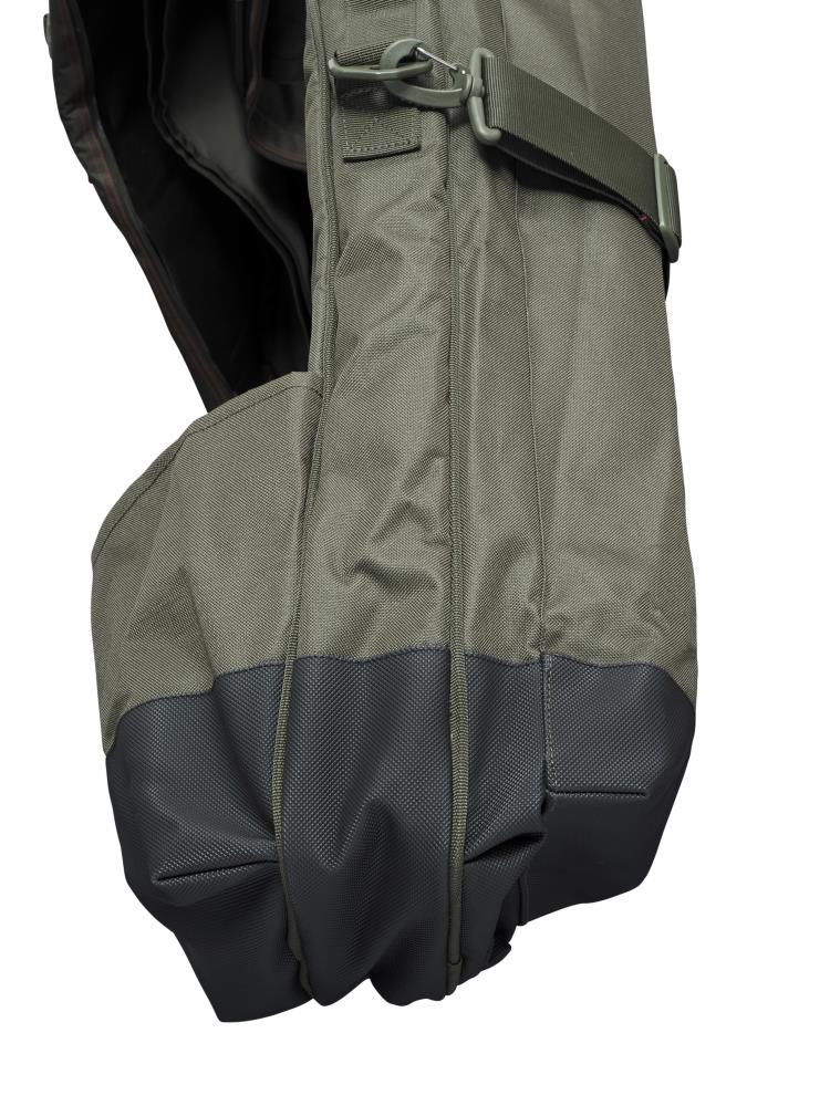 Zusätzlich verfügt das Futteral über zwei große Außentaschen: eine für Brollys und Shelter sowie eine weitere für Buzz Bars (mit Alarmen) und Banksticks. Ein praktisches Taschen- und Riemensystem auf der Außenseite ermöglicht die Unterbringung zusätzlicher Ruten und Kescher. Der gepolsterte Schultergurt und die Webbing-Tragegriffe sorgen für einen bequemen Transport, während die internen Trennwände zusätzlichen Schutz bieten.