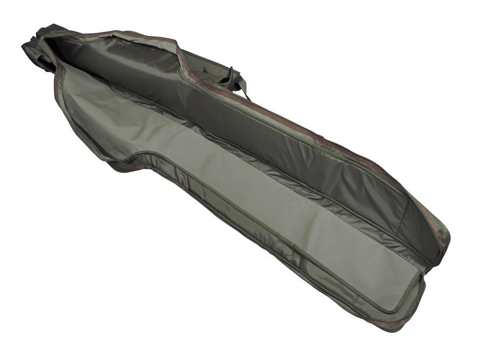 Mit einem durchgehenden Reißverschluss für einfachen Zugang und schweren Reißverschlüssen ist die Handhabung unkompliziert. Das Futteral akzeptiert Rutenlängen von 12 bis 13 Fuß mit bis zu 50 mm großen Ringen und bietet große Rollenfächer für optimalen Schutz Ihrer Ausrüstung.