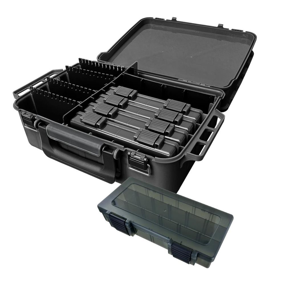 Ein besonderer Vorteil sind die modularen Unterteilungen, mit denen sich der Innenraum individuell an die eigenen Bedürfnisse anpassen lässt. Dadurch kann der Koffer flexibel für verschiedene Angelarten, Ködergrößen oder Zubehörsortimente eingerichtet werden. Das macht ihn besonders praktisch für Angler, die ihre Ausrüstung gezielt und systematisch organisieren möchten.