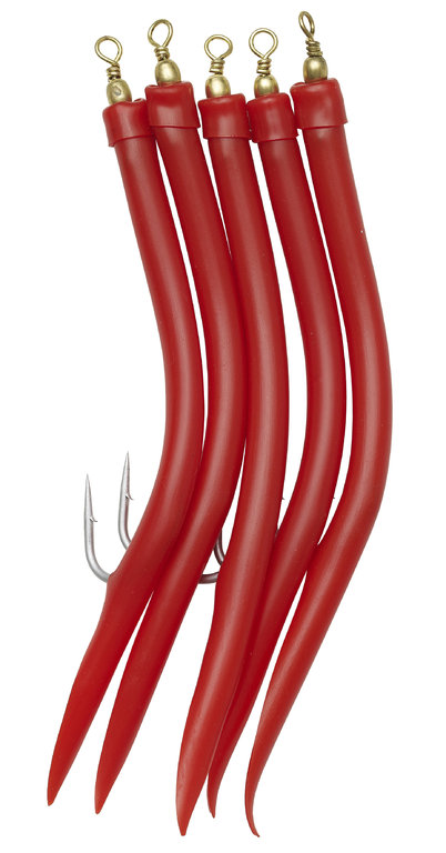 Das klassische Makk-Fischen hat in Skandinavien eine lange Tradition. Bei diesen Makks haben Sie Wahl aus 5 verschiedenen Farben und fünf Größen von 4/0 - 12/0. Ausgestattet sind sie mit Perma Steel Haken und Silikonschlauch.