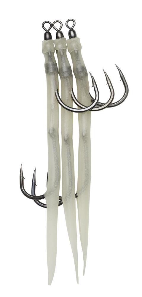 Werden Sie Profi! Dieser Doppel-Gummimakk wurde seit Jahren in Skandinavien handmontiert. Nun, mit einer perfekt maschinell erstellten Variante können Sie sogar die Profis übertrumpfen. Wirkt Wunder auf Dorsch, Köhler, Pollack und sogar Heilbutt, wenn Sie einen kleinen Köhler oder Hering auf den untersten Haken stecken. Absolut tödlich!