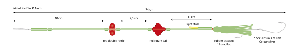 Das Single Octopus Doppelhaken-System ist ein perfektes Set zum Angeln mit großen Filets oder ganzen Fischen, das in tiefen Gewässern hervorragend funktioniert. Das Vorfach ist für tiefes Wasser, große Köder und natürlich große Fische geeignet und ideal für das Angeln auf Heilbutt, Dorsch, Seelachs und Leng. Das System ist 74cm lang, verfügt über eine Turbine und Rasse,, 2 Haken und einen 19cm langen Oktopus.