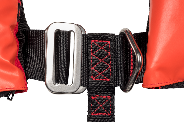 Double-chamber life jacket - Buoyancy is achieved by two flotation devices (minimum requirement according to IMO/SOLAS). The double-chamber system is designed so that if one chamber is damaged or fails, the other ensures buoyancy as long as the user is in the water.