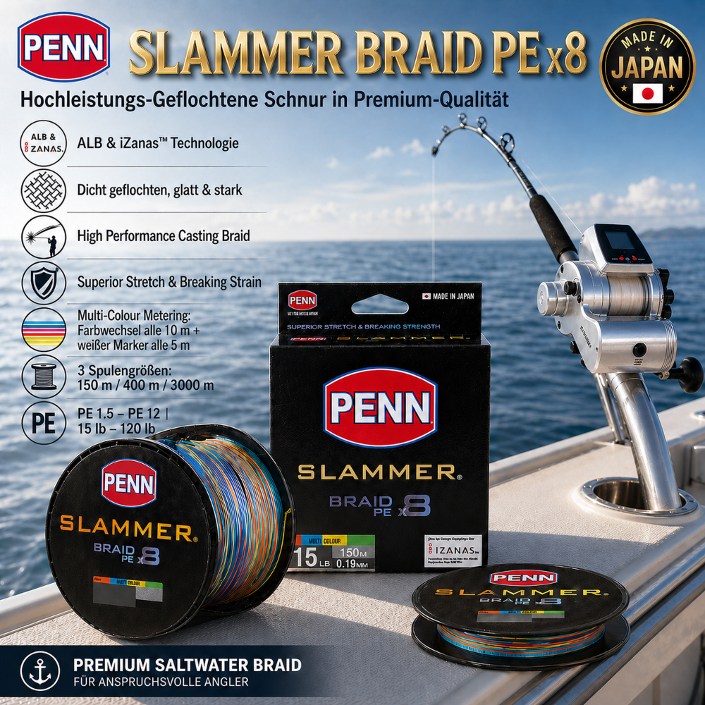 Die PENN Slammer Braid PE x8 überzeugt nicht nur durch ihre Stärke, sondern auch durch ihre hohe Anpassungsfähigkeit an unterschiedlichste Bedingungen weltweit: