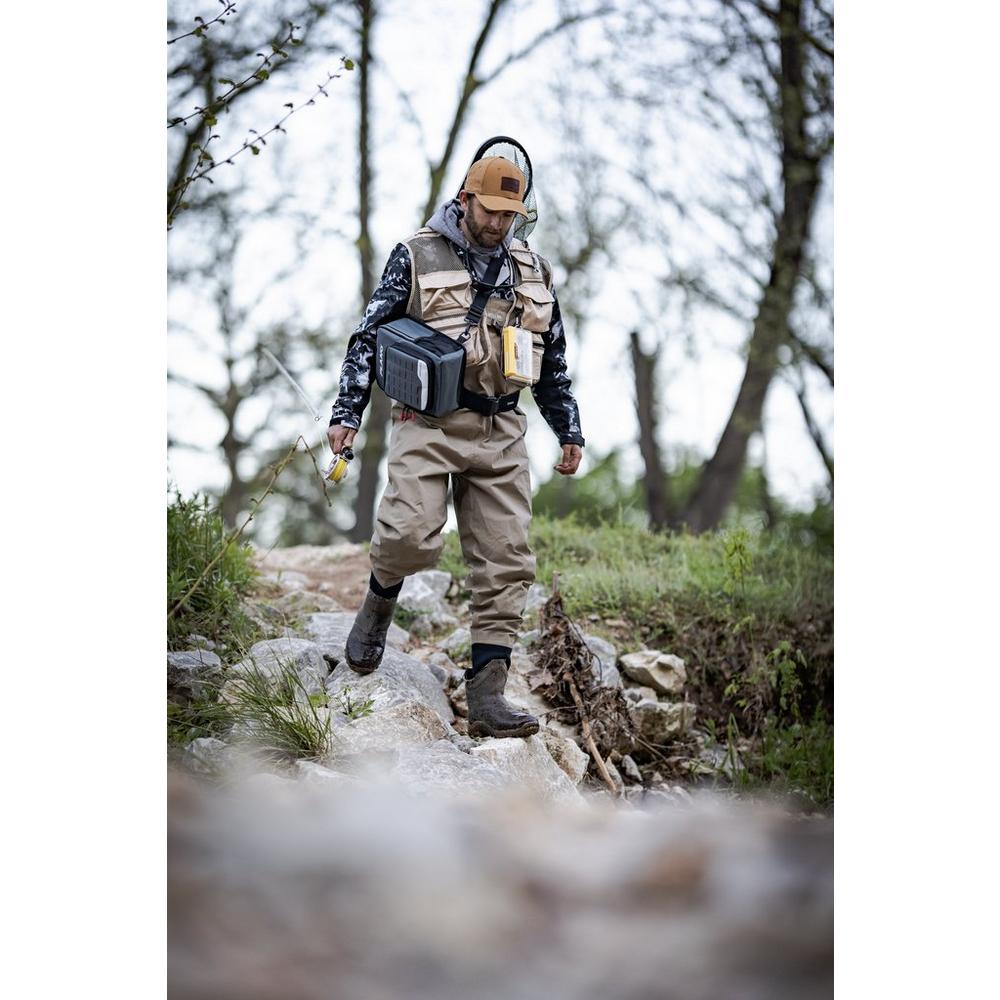- EINSTELLBARER EINZELNER SCHULTERGURT sorgt für Komfort und sicheren Sitz. Kann auf die rechte oder linke Schulter umgeschnallt werden, um die Tasche jederzeit bequem tragen zu können. Ideal für Fluss-, Ufer- und Fliegenfischen.