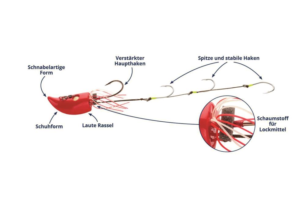 - Da man in den am Kopf befindlichen Schaumstoff Lockstoffe einbringen kann, wird der Köder individueller und erscheint dem Fisch noch interessanter. Vehementere Bisse sind die Folge.