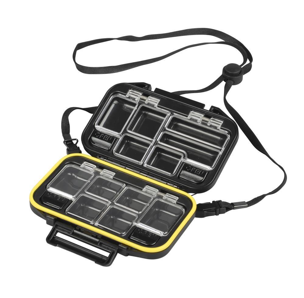 Alle kleinen Zubehörteile wie Wirbel, Karabiner, Sprengringe und Klemmhülsen können in dieser hochwertigen Kleinteilebox mit den schnell und perfekt schließenden Deckeln, sicher verstaut werden. Diese schmale Box braucht wenig Platz und kann auf jeder Bootsausfahrt oder Angelpirsch entlang des Wassers mitgeführt werden.