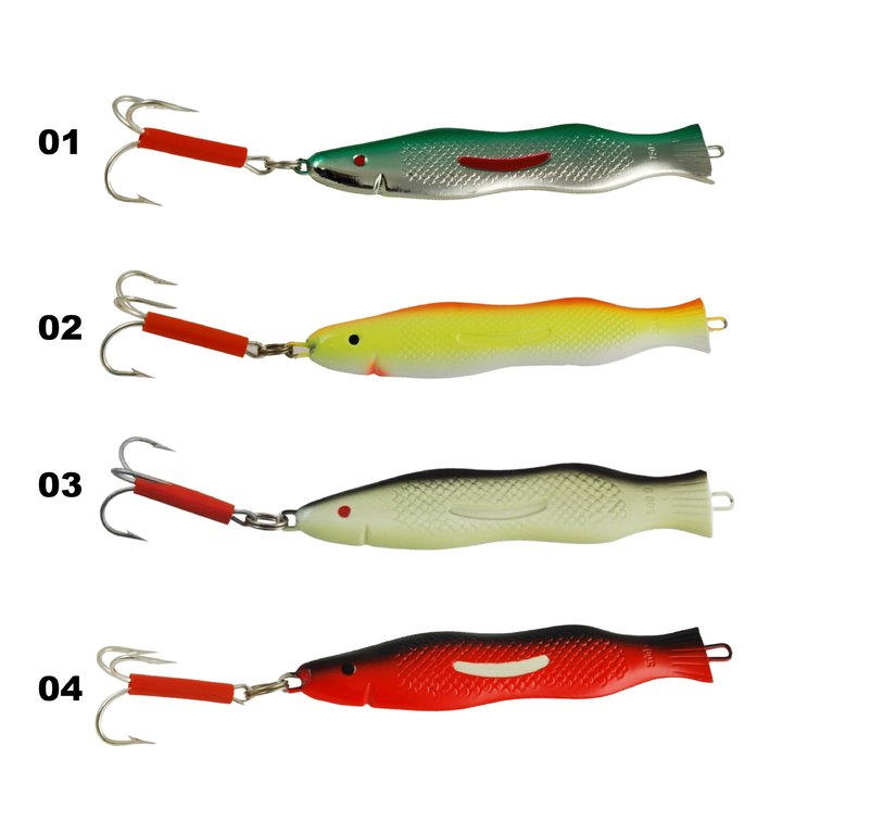 Der Pilker ist in vier Farben und fünf verschiedenen Gewichten erhältlich – von 125 g bis zu schweren 750 g. Die Varianten Silber-Grün und Rot-Gelb sind zusätzlich auch in den großen Tiefseegewichten 500 g und 750 g verfügbar.