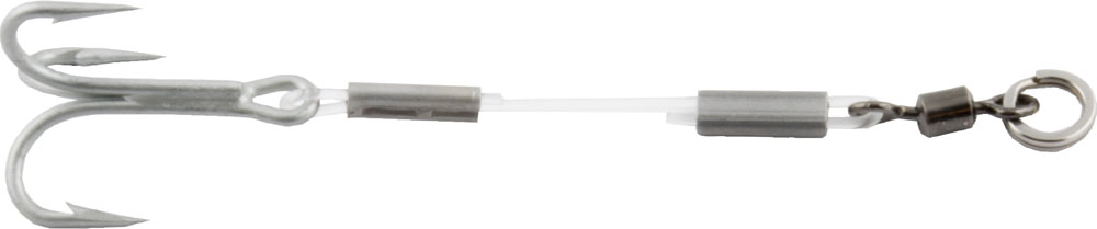 Dieses Stinger-System ist einfach zu montieren, egal welchen Softbait Sie verwenden. Als Drillingshaken wird ein Mustad 9430DS Haken verwendet. Die Länge bezieht sich auf die Gesamtlänge. Diese wird gemessen vom Ende des Drillings bis zum Sprengring.