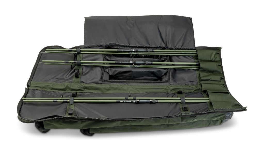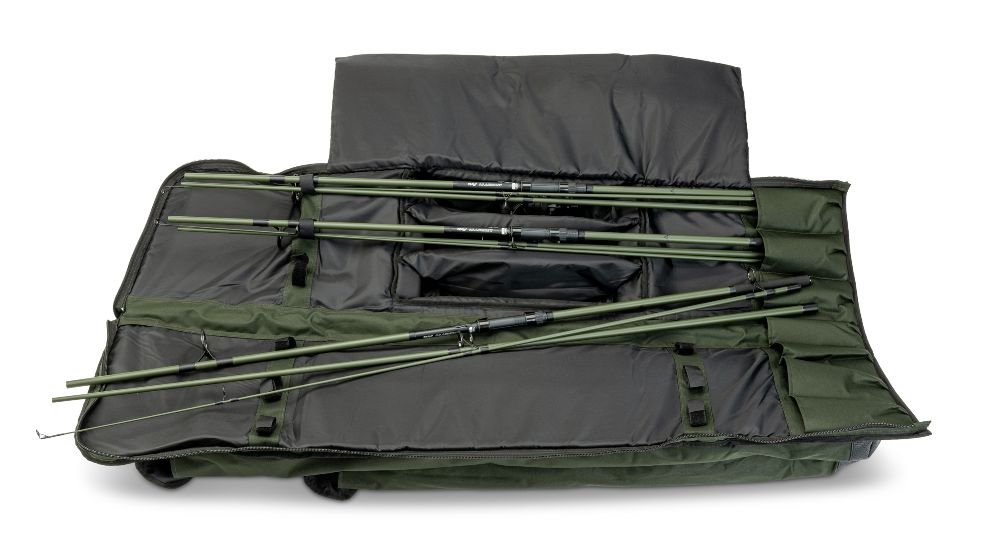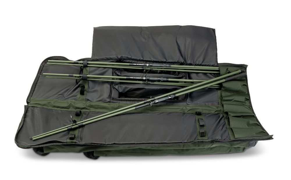 The ANACONDA 3 Section Holdall is the perfect solution for anglers who want to transport their 3-section rods safely and comfortably. This well-designed bag offers space for three mounted rods (up to reel size 14000) and three unmounted rods. There is also plenty of storage space for important accessories such as a feeder tube, bank sticks, landing net, umbrella and much more in the practical side pockets.