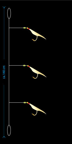 The system features three size 6/0 hooks. The leader is 1.40m long and has a line thickness of 0.90mm.