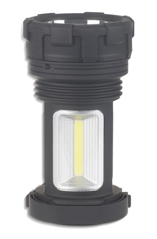 This special hand lamp has a light current of max. 220lm. It can illuminate about 180m. This lamp can be used as headlight or as a working light. The handle is rotatable and can be used as a lamp stand at the same time. In power mode, the 3x AA 1.5V batteries (not included in the scope of delivery) can last up to 3 hours. This lamp is made of ABS / PC material. The lamp has a pointed water protected housing (IP44). The size is approx. 17,5x9,5x7,5cm.