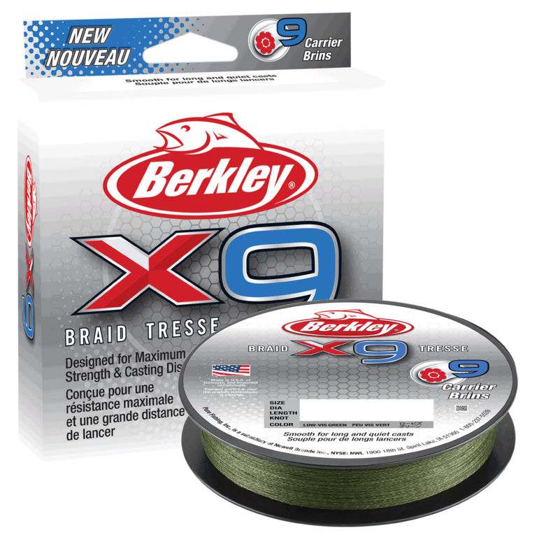This line is made from 100% polyethylene fibers. With 8-strand braided lines becoming widespread, Berkley takes its X9 line to the next level. In addition to the eight strands, an extra strand has been added to the core of the line. This makes the X9 extremely strong and durable. It is also very supple, allowing for quiet and long casts. The line is supplied on a blister spool in either 150m or 300m lengths (except for the 0.40mm - 270m and 0.50mm - 200m versions). It is available in Low Vis Green, Crystal, and Fluorescent Green.