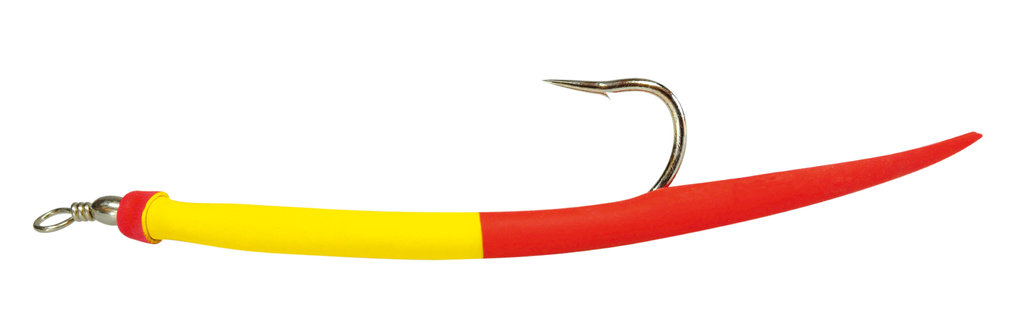 These original rubber makks are equipped with sturdy mackerel hooks. The luminous tubing covers the curved hook and is fitted with a snap swivel. This lure is a perfect imitation of a sand eel. It is available in six different, effective colors and in sizes 6/0, 8/0, and 12/0. Each pack contains three lures.