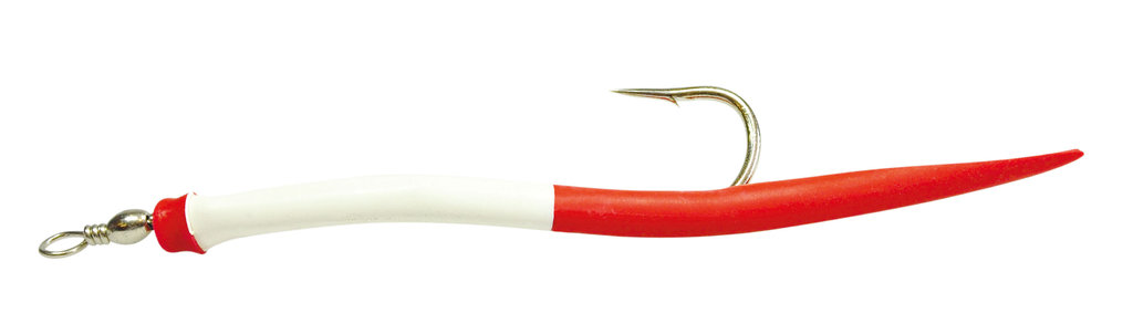 These original rubber makks are equipped with sturdy mackerel hooks. The luminous tubing covers the curved hook and is fitted with a snap swivel. This lure is a perfect imitation of a sand eel. It is available in six different, effective colors and in sizes 6/0, 8/0, and 12/0. Each pack contains three lures.