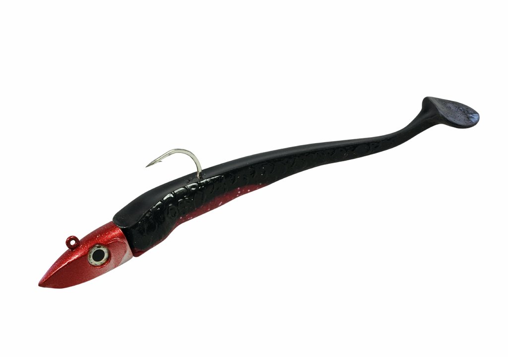 This rubber lure consists of the Twitcher jig head, ideal for all sand eel imitations, and the Hogy Paddle in the HDUV version. The jig head is fitted with a tinned 60° VMC High Carbon Jig Head hook with an ultra sharp point. This lure is ideal for open water presentation. The paddle tail provides plenty of pressure and attention, enhanced by the UV plastic and glitter flakes. When presented horizontally, flanking movements at the tip of the rod become really lively movements in the lure. Alternating left and right, the lure flanks the water dancing and creating the seductive play of a lively sand eel. The jig heads are colour matched to the paddle tails. This artificial lure is available in many different colours and weights from 100g to 185g.