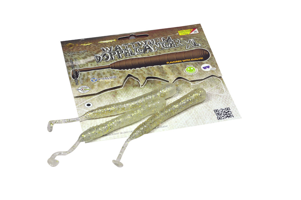 We've all been there: a great day of fishing, the fish are biting, and then there comes a time when you run out of lugworms or they're hard to find. For this situation, Eisele developed the Lugworm Doppelganger. This lure sets new standards in the artificial lure market. This innovative worm not only looks like a real lugworm, but it's also saturated with the revolutionary attractant "Kvalvik" from Norwegian commercial fishermen. These worms are made of highly durable, slightly buoyant, PVC- and phthalate-free, non-coloring material without toxic plasticizers. The lure is 1000 times more durable than other soft plastic lures. It's approximately 13cm long. Each pack contains 3 lugworms. The XL size of this Lugworm Doppelganger is available in five colors. The Lugworm Doppelganger XL is made in Germany and is a true alternative to the real thing in the Baltic and North Seas, as well as in Norway and Iceland. This size is also ideal for drop-shotting.