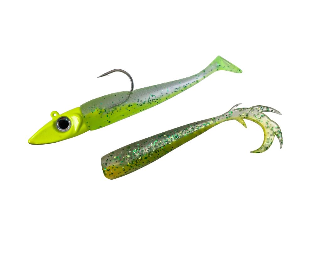 The Softlure Flexxxi Mini is Made in Germany. It is super soft, extremely durable, without toxic softeners, easy to float and available in many success colours and two weights. Success is a matter of head! It is mounted on an Eisele Twitcher jig head - The Dancer! A tinned VMC Carbon Jig hook 60° and a 3D XL eye are used. Included in each pack is a pre-rigged shad with paddle tail and a replacement body with dragon tail.