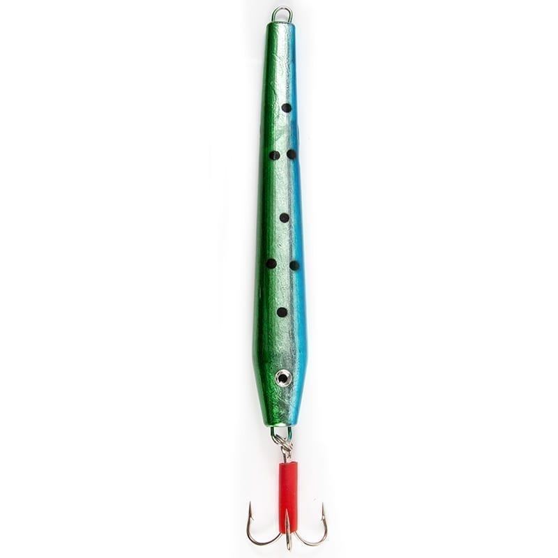 The FLADEN Batongen III jig is a powerful, rod-shaped sea lure specifically designed for heavy jigging in deep water and strong currents. Its characteristic thickening at the bottom allows the jig to sink quickly and steadily – perfect for targeting predators like cod, coalfish, ling, and halibut.