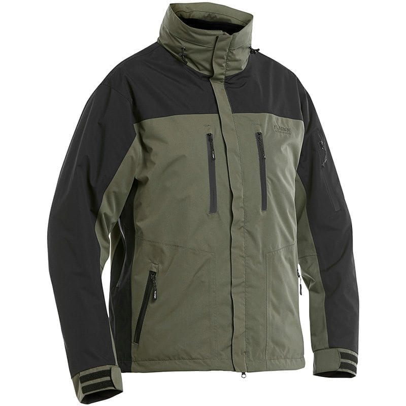 This is an elegant jacket for fishing, hunting and other outdoor activities, in different seasons. The jacket has an attractive and clear design. It is 100% waterproof and windproof with ventilation zippers under the arms. It is made of 100% polyester Peach Microfibre laminate. The water resistance is rated at 10,000+ mm. The highlight of this jacket is the removable fleece lining, which can be worn without the jacket as a fleece top. The jacket can be used with or without fleece lining. This jacket is available in two attractive color combinations: green/black and gray/black. It has two narrow reflective stripes on the front. An ideal combination is with the matching trousers 22-82961-XS or 22-82962-XS, which you can also find in our store..