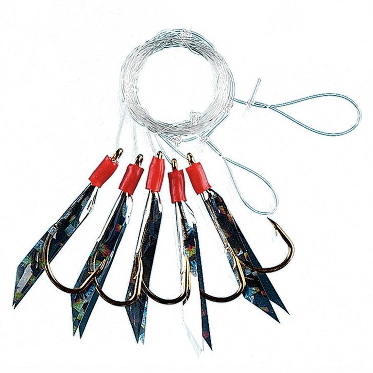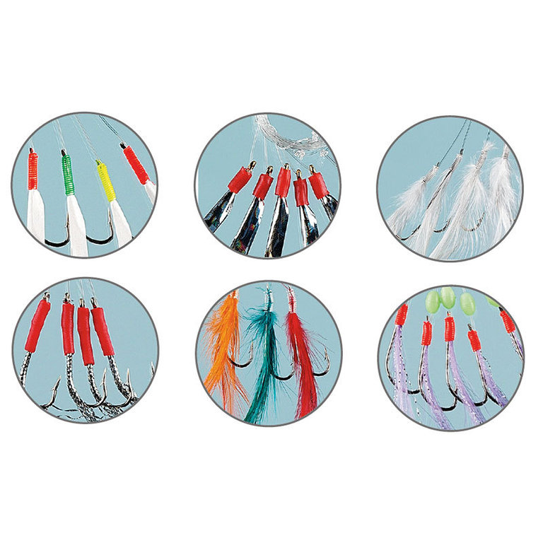 This rig assortment consists of six different rigs, 2 of each rigs are included. The rigs have a hook size of 2/0 or 3/0 and are therefore ideal for catching cod and mackerel. The line thickness of the leaders is 0,60mm. Here you get 12 rigs for a top price.