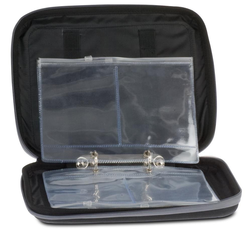 The Sphiro Protector Case is a small, sturdy case that keeps your sbirolinos absolutely safe. Elastic straps are attached to the inside of this piece, into which the sbirolinos can be inserted. Furthermore, six double clear pockets attached to a ring binder holder offer space for leaders. Additional utensils can be stored in the outer pocket.