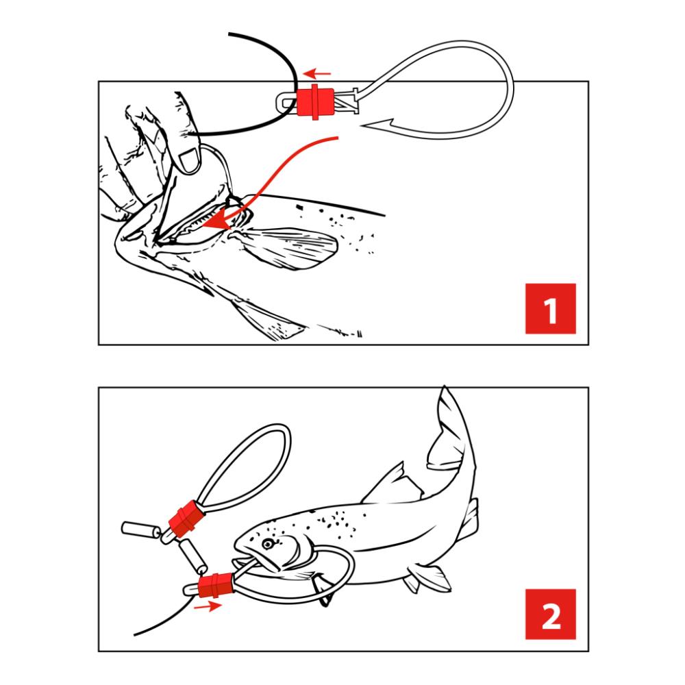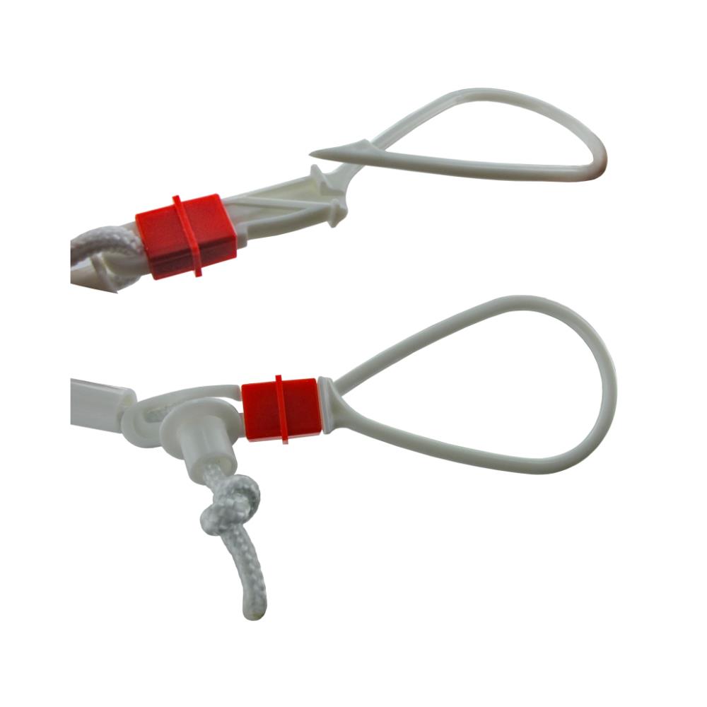 This string is ideal fish holder for Sea-trout and friends angling on mud-flats. The captured fish is held securely by a karabiner that is slipped through the mouth and gill. The karabiner also has a sliding lock for extra security. Comes equipped with 8 karabiner (for up to 8 fish). Special feature: The karabiner and all components are comprised of flexible plastic, making them rust-free in salt water.