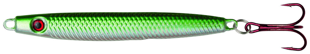 It is a slim, lively and lead-free pirk. This lure is a hybrid speed jig/pilk and has an oversized 3D eye to attract fish even in the deep. High quality split rings and hooks make it a perfect and quick pirk.