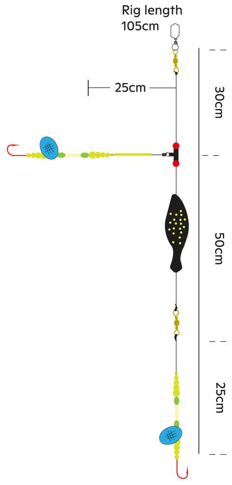 This unique boat and bank fishing assembly consists of spinner blades and 2 hooks with interchangeable bend lights in combination with an inline "butt spoon". Attracts fish from far and wide!