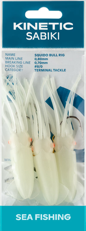 The Kinetic Sabiki Squido Bull is a modern and extremely effective rig specifically designed for predatory fish that increasingly rely on squid as their primary prey. As the diet of many marine fish – especially in Norway – is constantly changing, this rig is the perfect solution for these evolving underwater conditions.