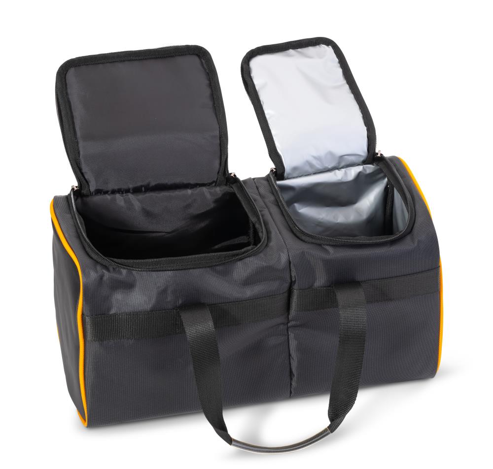 This bag is divided into two compartments. One compartment has thermal insulation to keep bait chilled when it reaches the water. On the other side there is space for many other important items. Carrying handles make for easy transport.